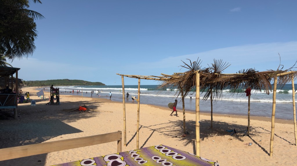 Un lodge semplice, gestito da ragazzi ghanesi, direttamente in spiaggia dove è possibile sostare a pochi metri dal mare. Ci sono camere, un ristorante che cucina aragoste è una spiaggia magnifica orlata da palme.