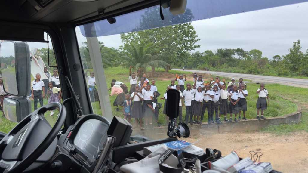 Appena arriveremo a Douala, nella capitale del Camerun, andremo alla MAN per cercare di riparare il problema del condizionatore. Dovremo quindi resistere, qualche giorno, in queste condizioni.