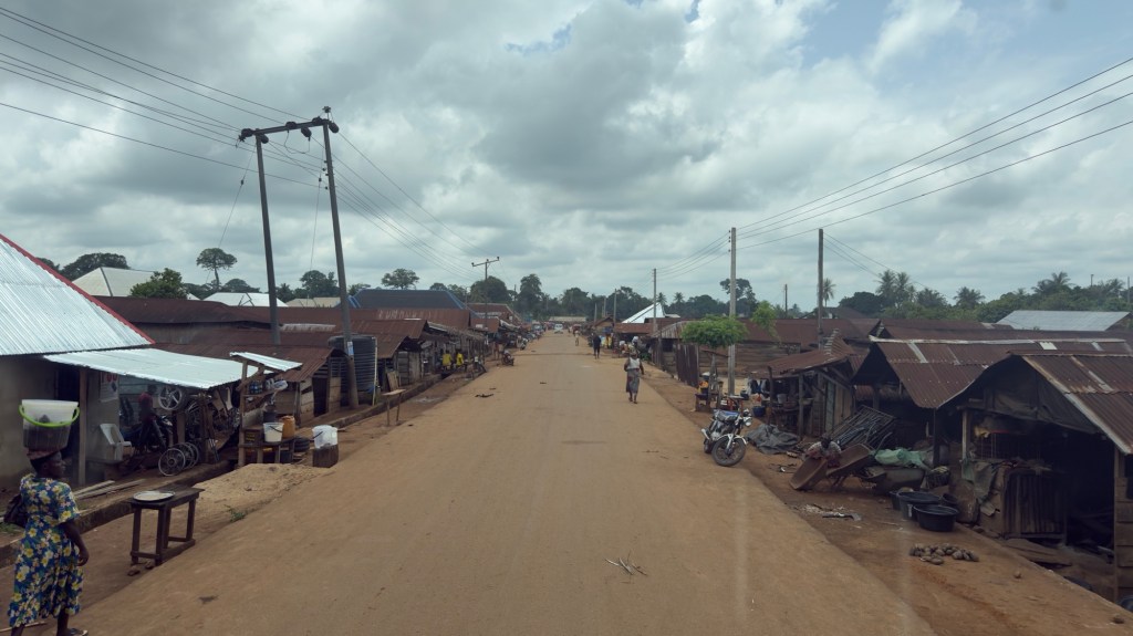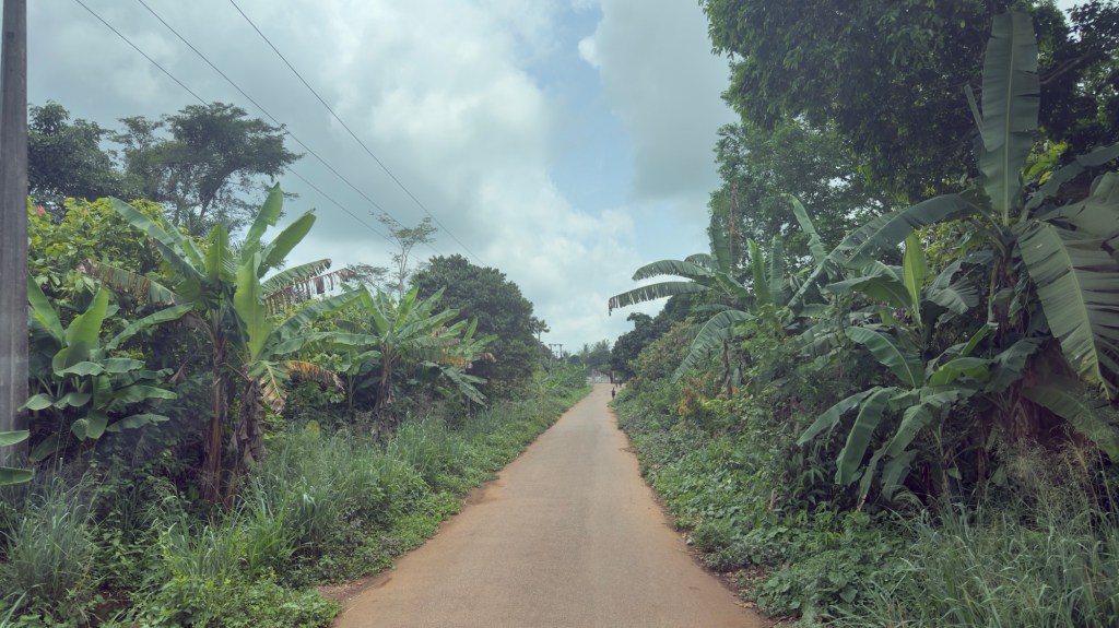 Superato anche l’ultimo controllo, arriviamo al villaggio delle cascate, l’ultimo prima del confine con il Camerun.